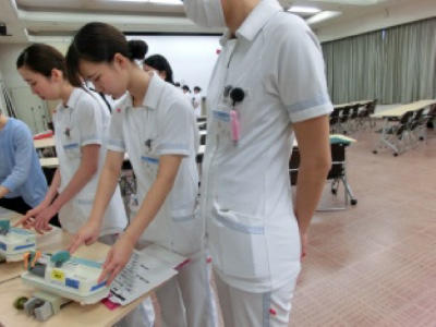 看護部は新人の皆さんが、不安なく技術を習得し勤務できるように、また能力を引き出していけるようにフレッシュパートナーやアソシエートナースを配置し、技術研修・多重課題研修・救急蘇生研修等を組んでいます。また、メンタルサポート体制も整えています。