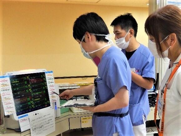 集中治療科では血液浄化装置の操作、人工呼吸器・NPPV装置・ネーザルハイフローなどの導入、人工呼吸器使用患者の使用中点検や一般病棟への転棟時の装置移動の対応を行っています。また、使用している人工呼吸器、NPPV装置などの日常点検を1日3回(朝・昼・夕)行っています。
