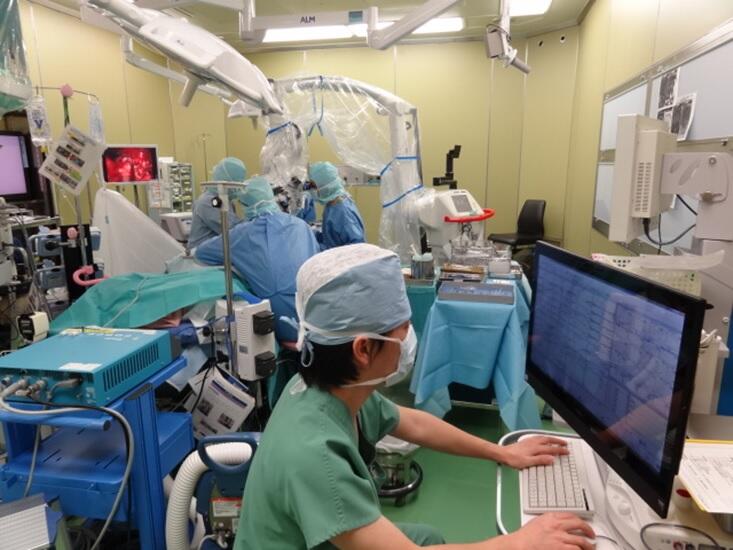 手術室で稼働している機器には、麻酔器、電気メス、手術台、内視鏡外科システム、関節鏡システム、手術顕微鏡、自己血回収装置、術中神経モニタリング装置、下肢静脈瘤血管内レーザー装置、ナビゲーションシステム、体温管理装置などがあります。